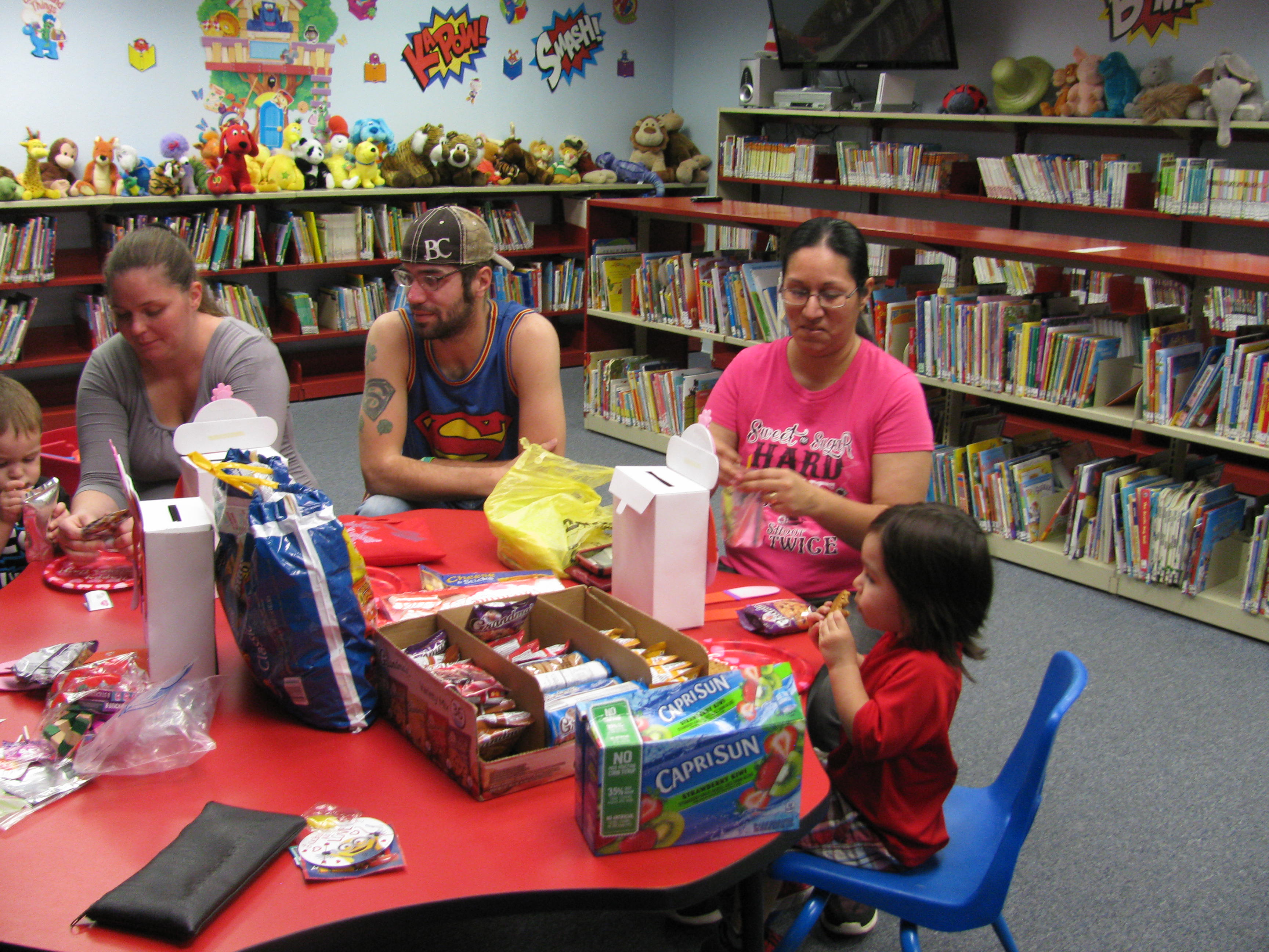 T.J. is enjoying his oatmeal and raisin cookies while mom looks on.